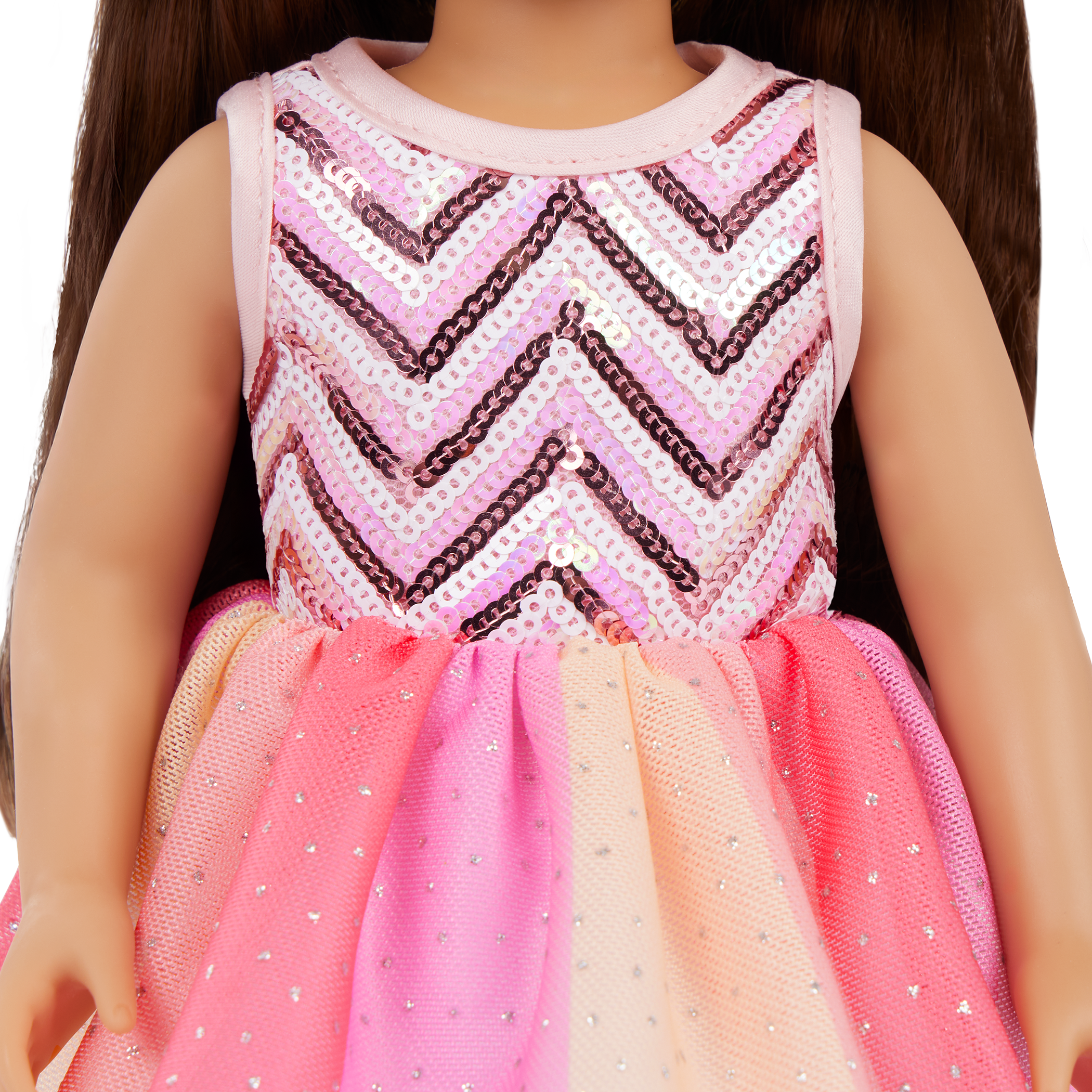- Set Includes: 14-inch posable doll Dalia with dazzling party outfit.