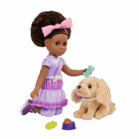 - 6-inch Stuffed Dog Plush Luna: Luna is a sweet stuffed puppy with soft fur, an attachable collar and leash, and puppy accessories like a brush, a chew toy, a treat, and a bowl.