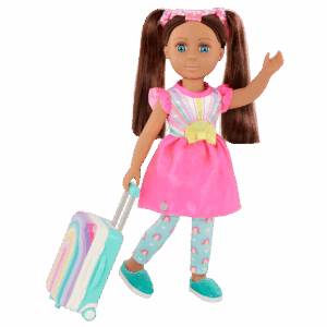- Doll Boots: A pair of adorable blue glitter rain booties with pink knitted trim for 14-inch dolls.
